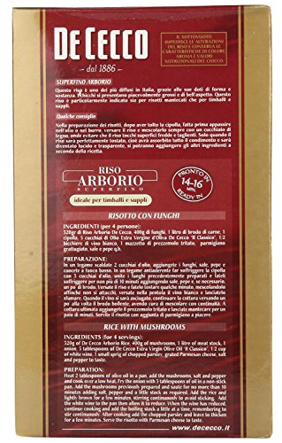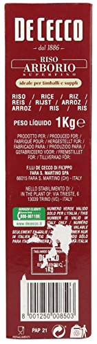 Dieser leckere Riso Arborio von De Cecco ist nach einer kleinen Stadt in der Nähe von Vercelli benannt. Dort tauchte diese Sorte auch 1946 zum ersten Mal auf. Die lange Tradition und Qualität dieses Produktes hat auch die Firma De Cecco erkannt und verwendet nur den besten italienischen Reis. Die Reiskörner haben eine gute Größe und eignen sich dadurch sehr gut zum Kochen. Die Kochzeit beträgt 14 bis 16 Minuten. Dieses Produkt wird in einer Kilogrammverpackung geliefert. Der Riso Arborio von De Cecco eignet sich sehr gut als Bestandteil für eine Vielzahl verschiedener Risotto Variationen. Er schmeckt auch sehr lecker in Kombination mit den Meeresfrüchten von Vigilante oder der herzhaften Chorizo von Quinones. Dazu sollten Sie einen der leckeren italienischen Rotweine des Mitte-Meer-Onlineshops probieren. Unsere Auswahl ist vielfältig und es warten echte Qualitätsweine auf Sie. Der Reis sollte kühl und trocken gelagert werden. Die Produkte der Firma De Cecco werden mit exzellentem italienischen Hartweizen in der Mühle Molino in Fara San Martino hergestellt. Noch heute produziert das Unternehmen dort, wo einst seine Erfolgsgeschichte begonnen hat. Sobald der Weizen zur Weiterverarbeitung angekommen ist, wird er ausgiebig auf Qualität überprüft. Die Kontrollen werden teilweise noch in echter Handarbeit durchgeführt, was zu einer der Traditionen der Familie gehört und ihre Pasta zu etwas ganz besonderen macht.